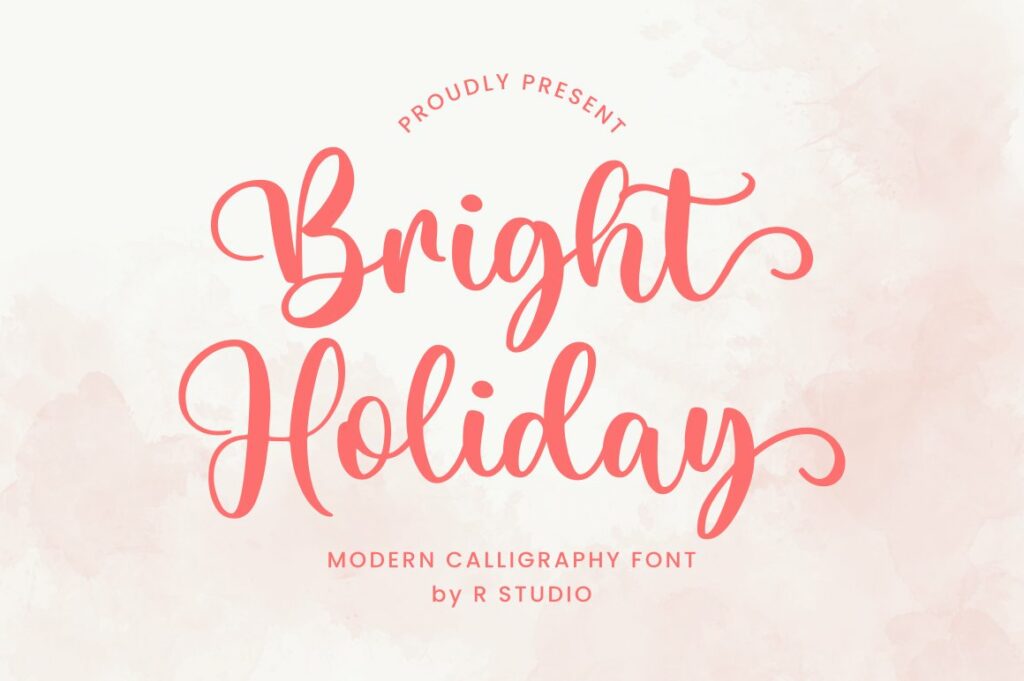 Bright Holiday modern calligraphy and flowing handwritten font. It is PUA encoded which means you can access all of the glyphs and swashes with ease! It features a varying baseline, smooth lines, gorgeous glyphs and stunning alternates.