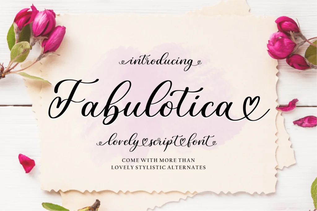 Introducing by Qwrtype Proudly Present, Fabulotica is a Lovely Script Font Fabulotica is perfect for product packaging, branding project, megazine, social media, wedding, or just used to express words above the background. This font includes OTF & TTF , Fabulotica also multilingual support.
