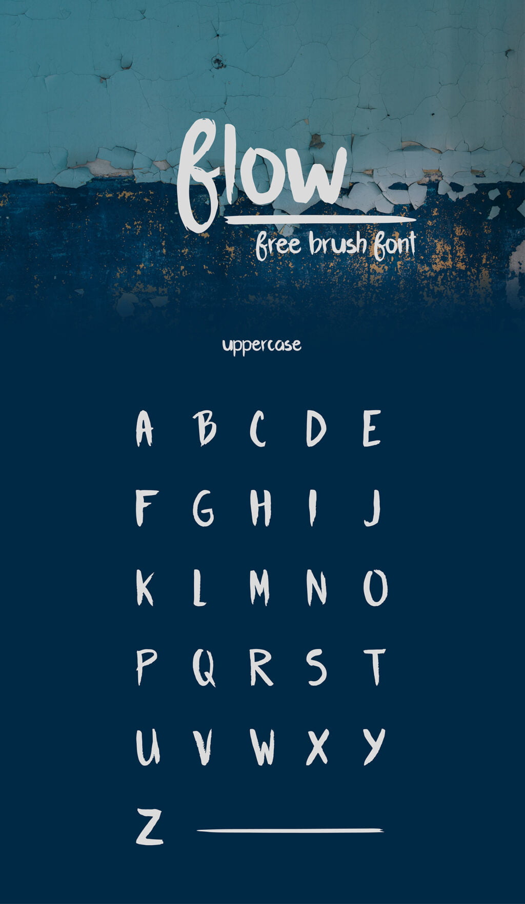 Earlier in the week with a new font Brush, and completely free. It’s good if you add it to your collection of fonts. Introduction Flow Brush Font! Flow Brush designed and shared by Dessy Davidova. Rough and imperfect characters give a personal and a naturally hand drawn look to your text, ideal for logos, apparel, quotes, product packaging, or anything which needs a typographic turbo-boost.