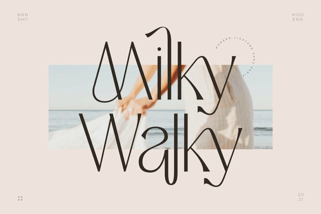 Milky Walky Font is a modern and elegant sans serif font. This font is both modern and nostalgic and works great for logos, magazine, social media. Already matched up and ready to be used together for your next design!