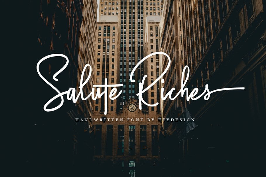 Salute Riches Font – a new handwritting font by FeyType. For those of you who are needing a touch of elegance and modernity for your designs, this font was created for you! It is a multi purpose signature font.