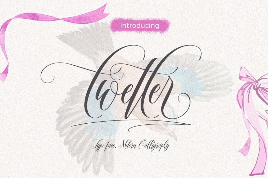 A stylish calligraphy font that features a varying baseline, smooth line, classic and elegant touch. Introducing Twetter Font. Twetter is a font that made the hand by having the character up and down like a dancer.